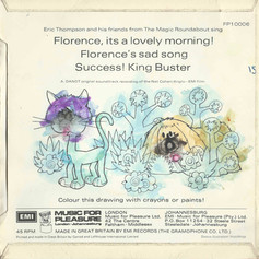 However, it's the record and three soundtrack songs that most interest me. The music of the Dougal and the Blue Cat songs was composed by prolific French accordionist Joss Baselli (100+ albums to his name!), with lyrics and singing by Eric Thompson, (A Play School presenter at the time, Eric was father of Harry Potter and Nanny McPhee actor Emma Thompson, fact fans). Thompson claims never to have read the translations of the original French scripts or had any clue as to the plot lines. His new stories and scripts often worked around the visuals rather than with them, adding to the otherworldly sense of surrealism often associated with The Magic Roundabout.